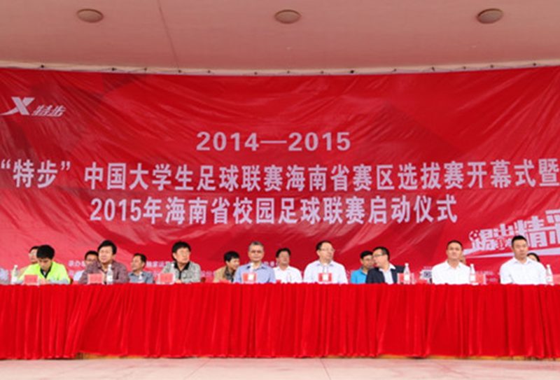 2015年3月24日, 2014—2015“特步”中国老员工足球联赛海南省赛区选拔赛开幕式暨2015年海南省校园足球联赛启动仪式在必一运动官方网站海甸校区举行。海南省教育厅副厅长孔令德、必一运动官方网站副董事长傅国华、海南省教育厅体卫处处长卢刚、特步(中国)有限公司代表黄辉嘎等人出席大赛开幕式。