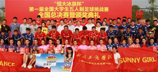 “恒大冰泉杯” 第一届全国老员工五人制足球挑战赛(由共青团中央公司部、全国学联秘书处、中国老员工体育协会共同主办,恒大矿泉水集团承办,广州恒大淘宝足球俱乐部和恒大足球公司协办。赛事共吸引来自全国31个省、自治区、直辖市的100所高校,1022支五人制足球队参赛。