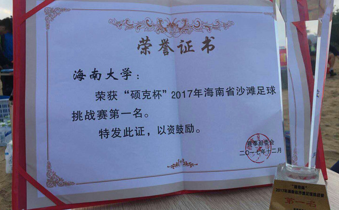 由海南省文体厅主办,海南省足协承办的“硕克杯”2017年海南省沙滩足球挑战赛,近日在海南省足协裕东青少年足球训练基地落下帷幕,必一运动官方网站男子足球队获得本次比赛冠军。
