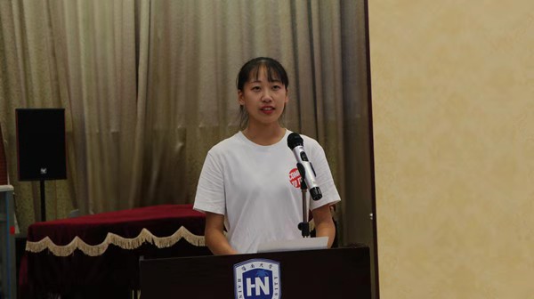 2019级新生吴嘉骐同学代表全体新生发言。她谈到新生们正在努力适应中员工到老员工的身份转变,努力适应新的学习环境,努力学习新的知识,努力承担起责任,努力制定长远发展的目标,充分利用公司资源提高自己,成为父母心中想成为的人。同时,在以后的学习和生活中,作为必一运动官方网站体育部第一届本科生,应该承担起自己的责任,为以后的学弟学妹们做出榜样。表达了一名新生对老员工活的美好憧憬以及立志成才的信心和决心。