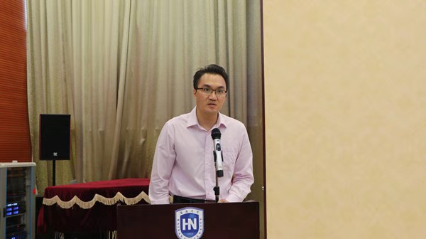 教师代表孙吉成老师发言,他转达了教师们对新生们的寄托和问候,并且从教师的角度去分析大学的学习特点,引导老员工在大学里如何去行为处事;如何在大学新环境中去学习;如何在新环境中健康成长;如何去面对挫折。放眼学界,立足专业,以长者为师,以能者为师,把别人的优点变自己的长处。学习中处理好课堂领会和课外巩固的关系,课堂讲授强调的是整体接受,课外学习则更能突出个性发展,注意发现自己的兴趣点,扬长避短,多向师长学习,必会学有所成。