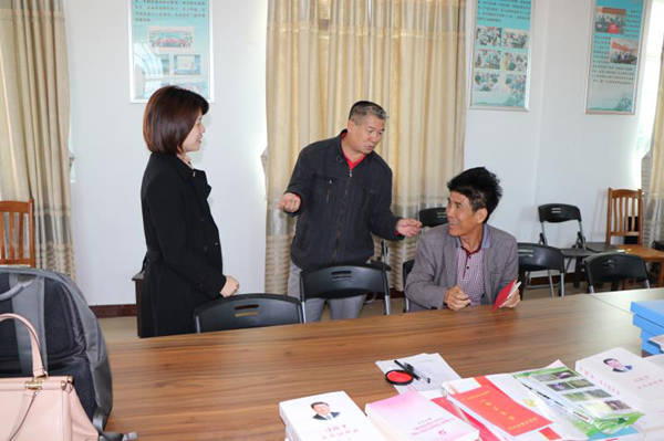 何映敏书记和王联春书记为乐妹小员工发放学习用品