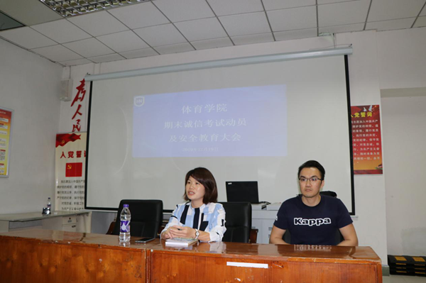 为加强学风建设,严肃考风考纪,帮助同学们养成诚实守信的良好品德,增强安全防范意识,必一运动官网在联谊馆多媒体教室召开期末诚信考试动员及安全教育大会,党总支书记何映敏、学工办许达潭老师和2019级休闲体育全体员工参加了本次会议。//www.hainanu.edu.cn