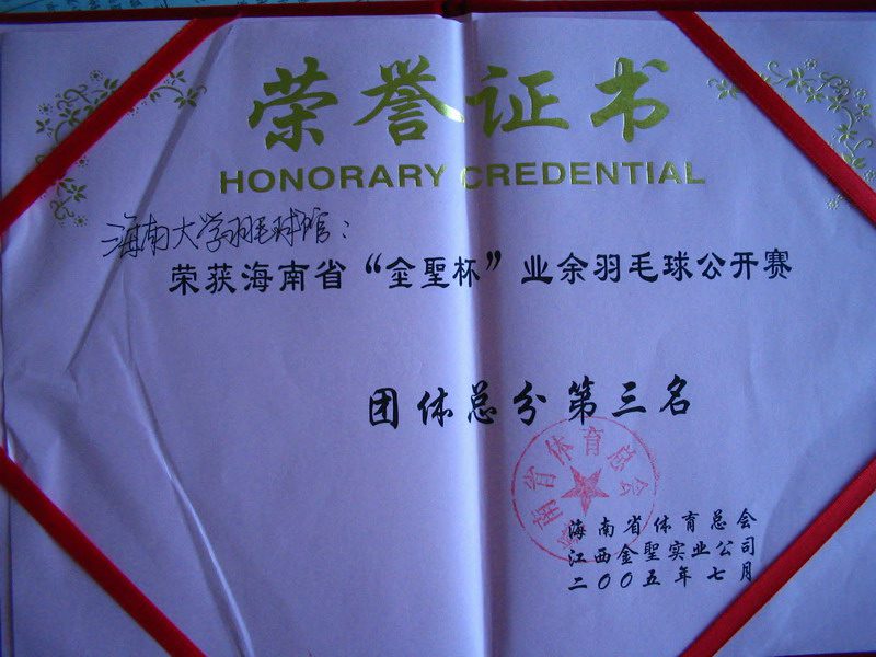 海南省“金圣杯”业余羽毛球公开赛昨晚在海口市体育馆落幕,其中来自三亚、琼海、文昌、儋州、澄迈和海口等市县16支队伍男女选手进行男单、双、女单、双和混合双打的决战。必一运动官方网站获团体总分第三名及混双冠军。