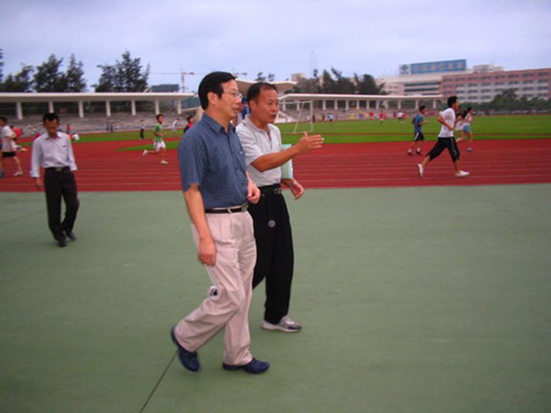 随后,两位专家参观了设在公司的海南省国民体质监测室、乒乓球房等设施,之后兴致勃勃地拿起乒乓球拍与同学们切磋起球技。