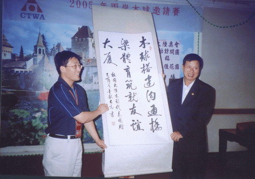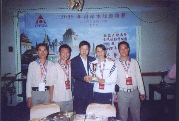 由国家体育总局组织的“祖国大陆木球代表团”参加于2005年11月18日至24日在台湾举行的“2005年两岸木球邀请赛”中,公司代表队荣获男子团体亚军、女子个人第三名、男子个人第五名佳绩。 “两岸木球邀请赛” 由台湾中华台北木球协会主办,每年举办一届,本届邀请赛公司共派出4名运动员组成海大队。应邀的大陆木球队还有:北京语言文化大学代表队和首都必一运动官网代表队。 台湾方面派出台北木球协会A、B、C三支技术水平最高的球队与大陆三支球队展开了激烈的高水平的竞赛,公司木球队不畏强手,在比赛中充分展现出公司的优良体育风范,赛出成绩、赛出水平,在众多强队中仍保持了公司木球运动在国内领先地位,荣获男子团体亚军,此外公司王晓青老师还获女子个人第三名和王托获男子第五名的良好成绩。 本届比赛本着“木球建友谊大厦”的宗旨,赛后两岸领导还进行了共商木球运动在国内的再推广和发展谋略。