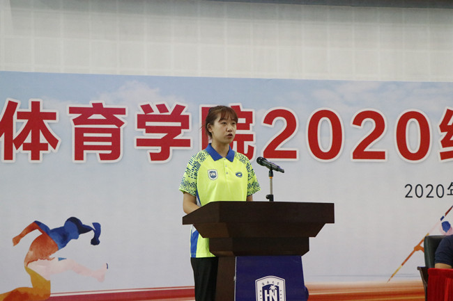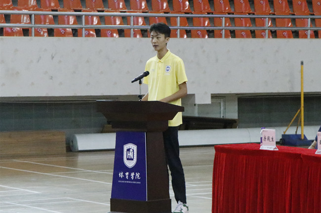 19级员工代表吴嘉骐同学发言,她结合自身一年的老员工涯向新生们分享了几点感触:如何为体育公司的美好明天贡献一份力量如何学会自立自强、如何加强自我管理能力,如何更快的融入集体生活。最后,她向新同学传达了我们海大人自强不息的奋斗精神及海纳百川的胸怀和良好的道德修养。