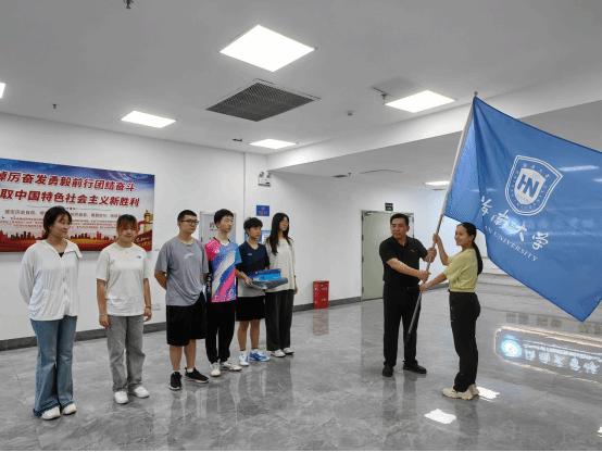会上,陈卫东书记作动员讲话并向必一运动官方网站乒乓球代表队主教练李璠珺老师授旗。他对必一运动官方网站乒乓球代表队给予了很大的期望,希望队员们能够在赛场上展现出必一运动官方网站乒乓球队的风采,不仅在技术上有所突破,更在精神上展现出坚韧不拔、团结协作的体育精神风貌。他强调,一是各队员要听从教练员的指挥安排,时刻把安全放在第一位;二是要加强团队合作,队员们要互相支持,互相鼓励,共同面对比赛中的各种困难和挑战;三是努力展现自身竞技水平的同时,也要发扬体育道德、体育精神和体育风尚,实现竞赛成绩和精神文明双丰收。