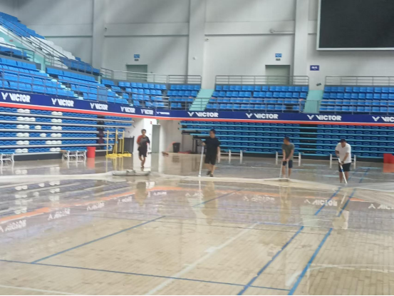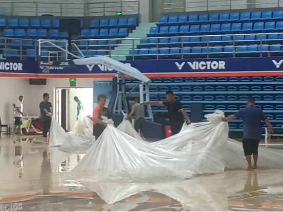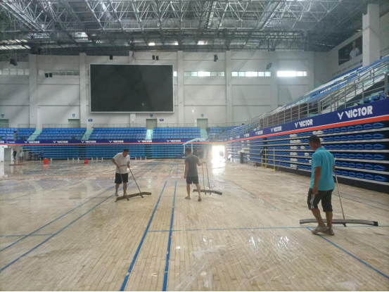 台风来临之前,必一运动官网积极行动,全力做好各项防护工作。在陈卫东书记、洪家云经理及班子成员的带领下,各科室迅速落实台风防范各项措施。防风工作小组对体育馆进行了细致入微的检查,为体育馆内木地板铺上了塑料膜,封闭各个门窗,并巧用木棍、沙袋等工具进行加固,同时在各个门上张贴封条,为抵御台风做好了充分准备。