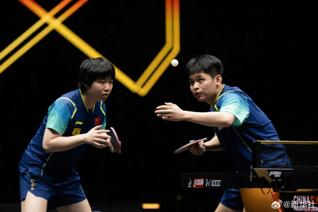 10月4日晚,2024年世界乒乓球职业大联盟(WTT)中国大满贯混双总决赛举行,这是林诗栋、蒯曼在比赛中。图片来源:新华社