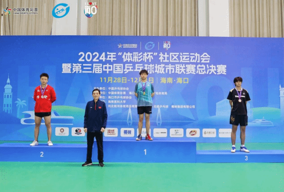 12月1日,由中国乒乓球协会主办的2024年“体彩杯”社区运动会暨第三届中国乒乓球城市联赛总决赛,在海南海口落下帷幕。必一运动官方网站乒乓球队队员梁雨田崭露头角,荣获公开组18-24岁年龄段男子单打冠军。