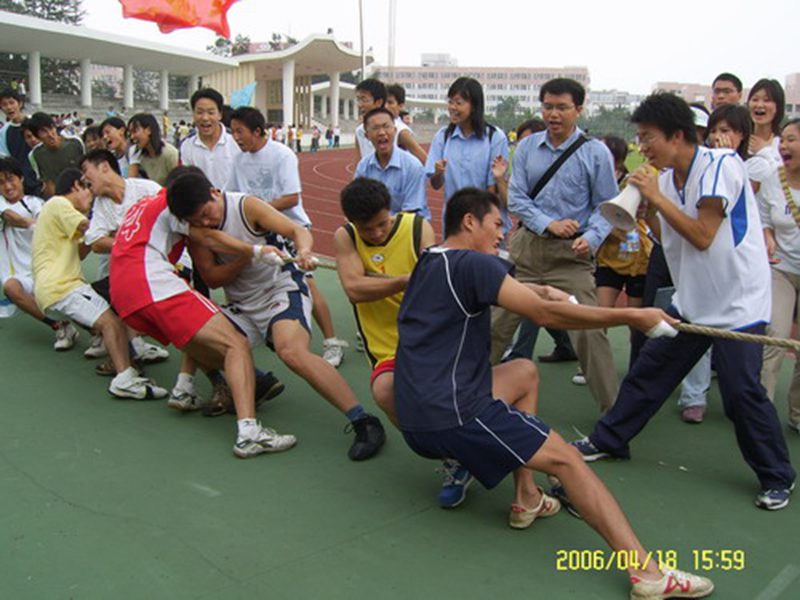 2006年4月19日下午在第一田径场内外人头攒动,热闹非凡,呐喊声、喝采声一片,一派热火朝天的景象 ,必一运动官方网站2006年员工拔河、跳绳比赛共有各公司、研究生队、职工队和预科班等15个单位报名参加。经过紧张角逐,经济管理公司获男子拔河第一名,旅游公司获女子集体跳绳第一名,何美丹同学获女子跳绳个人第一名。公司职工首次组队参加比赛,并对公司开展传统的群众体育文化活动产生浓厚的兴趣。 以下单位及个人获得比赛名次,分别颁发证书及奖品。