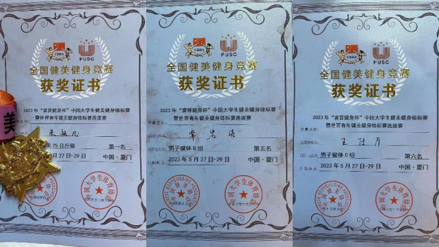 比赛经过激烈的角逐,公司朱轶凡同学获得男子传统健美75公斤级别冠军,常岩浩同学获得男子健体B组第五名,王仕厅同学获得男子健体C组第六名的好成绩。