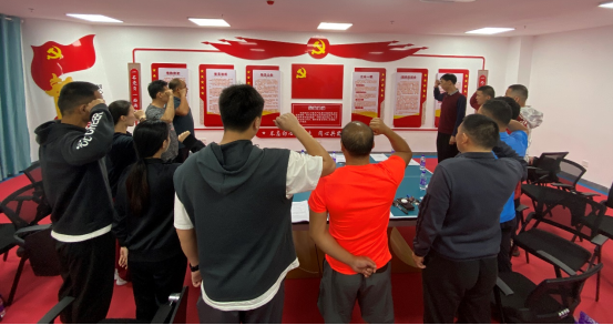 会议第三项,由肖国良书记带领第三支部全体党员重温入党誓词。党员们精神抖擞、声音洪亮,誓词的响起,又一次忆起第一次宣读入党誓词时的激动心情,庄严神圣的情感萦绕在党员之家。