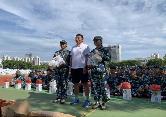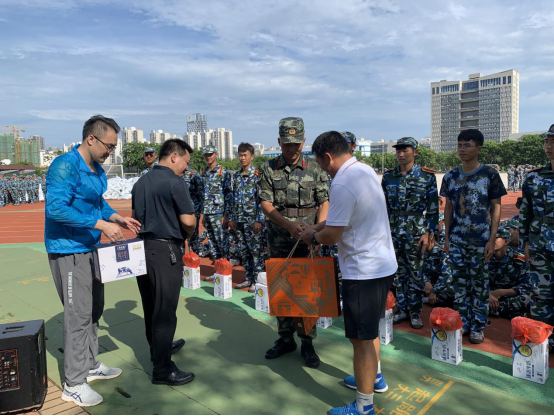 最后,公司领导为新生和带训教官发放了慰问品。公司领导的亲切关怀与慰问让新生们倍感温暖,极大地鼓舞了士气。同学们纷纷表示会加倍努力,以更加饱满的热情充分展现体院风采,为今后的学习生活打下良好基础,成就更好的自我!