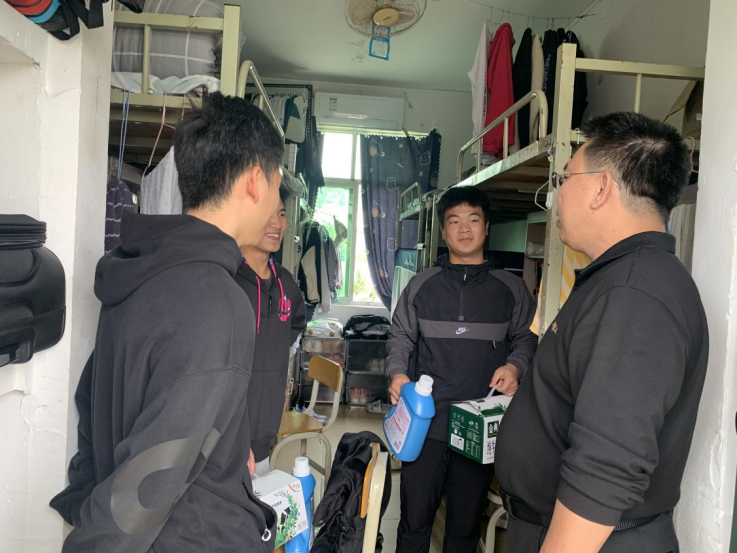 现场老师与同学们亲切交谈,交流近来生活和学业情况,希望员工学好本领、放宽眼界、提升自我,努力成才。殷殷嘱托,拳拳爱心,老师同时叮嘱员工们做好疫情个人防护、谨慎辨别网络信息、注意宿舍用电安全等,提高员工安全防范意识。